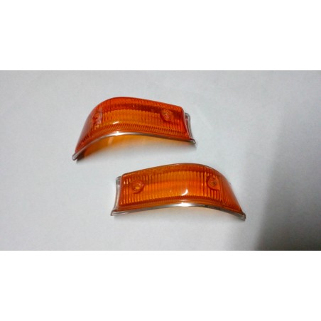 Paire de cabochons oranges pour Kadett B. Pourtour chromé.