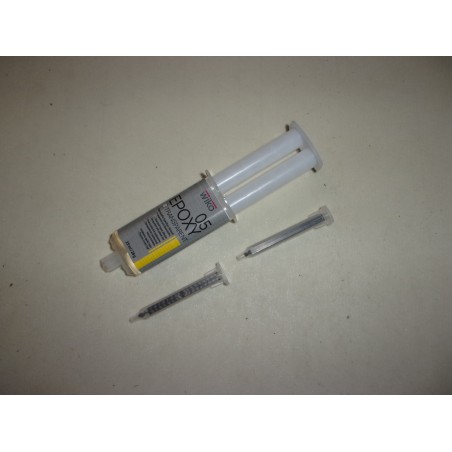 Colle Epoxy pour fixation des charnières chromées de custodes (vitres pivotantes).